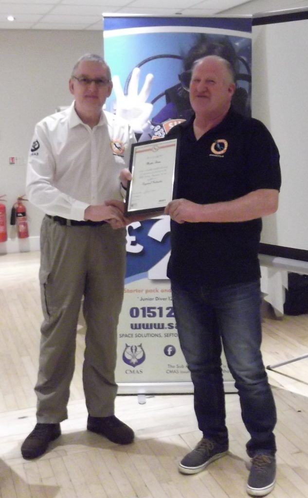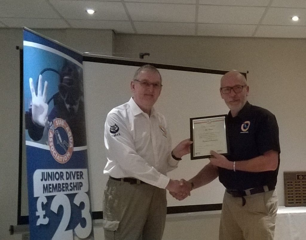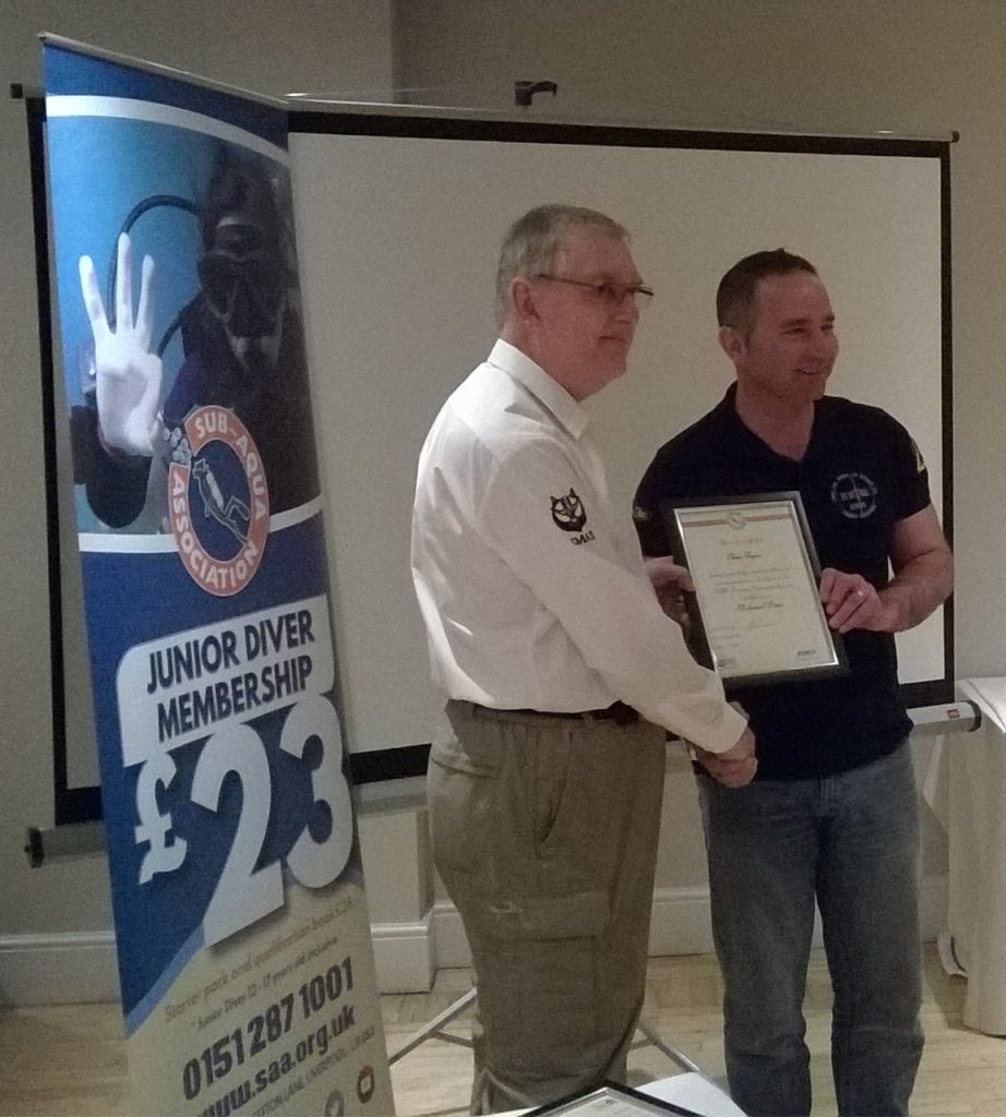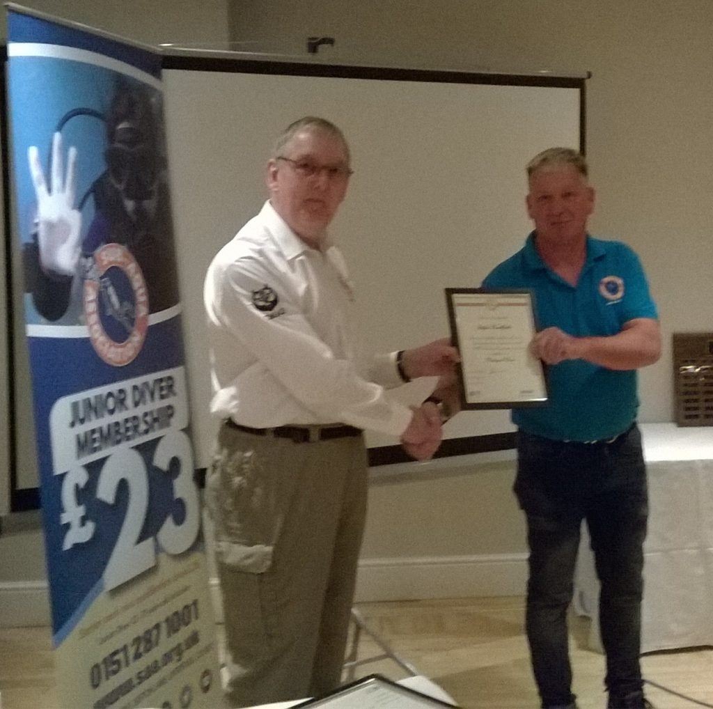 Dennis Tammadge a member of Mansfield & District Scuba Diving Club SAA no. 942 was the well deserved winner of the Kenn Tyler Award. His passion, enthusiasm and commitment is truly appreciated.