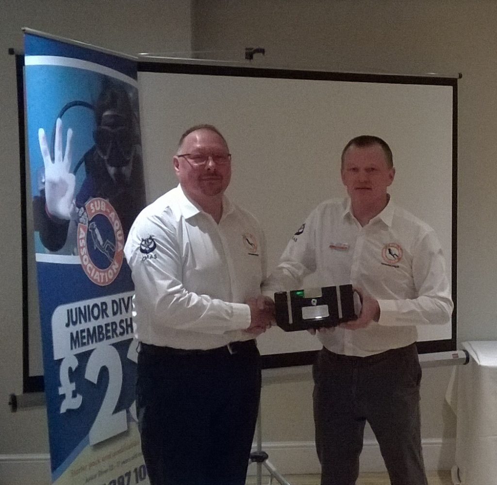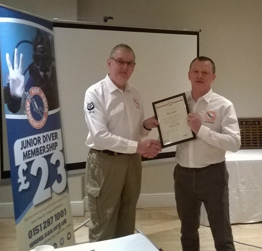 Cherie Winnard was given a Bronze diver as a thank you for the services that she has given to the SAA, both as O2/EDFA co-ordinator & Y&H regional rep. Cherie was unable to attend the AGM, but her gift was accepted by a member of her club – Chris Kean.